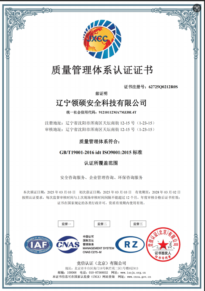 遼寧領(lǐng)碩安全科技有限公司位于遼寧省沈陽市渾南區(qū)天壇南街12-15號,注冊資金300萬。主要經(jīng)營范圍為遼寧省范圍內(nèi)的安全環(huán)保咨詢,生產(chǎn)安全事故應(yīng)急預(yù)案技術(shù)服務(wù)、企業(yè)雙重預(yù)防機制建立、履職能力評估、企業(yè)科研項目安全部分服務(wù)等的技術(shù)服務(wù)機構(gòu)?,F(xiàn)有員工12人,其中包括5名遼寧省級安全生產(chǎn)專家。成立于2022年4月18日,在盤錦市成立至今已經(jīng)為30余家企業(yè)提供了安全環(huán)保技術(shù)咨詢。 業(yè)務(wù)范圍包括:技術(shù)服務(wù)、技術(shù)開發(fā)、技術(shù)咨詢、技術(shù)交流、技術(shù)轉(zhuǎn)讓、技術(shù)推廣,安全咨詢服務(wù),環(huán)保咨詢服務(wù),標(biāo)準化服務(wù),企業(yè)管理咨詢,科技中介服務(wù),工程管理服務(wù),特種作業(yè)...查看更多